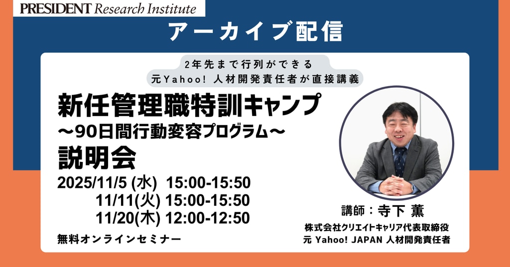 11/5 | 11/11 | 11/20 新任管理職 特訓キャンプ ~90日間行動変容プログラム ~ 説明会〈アーカイブ配信〉
