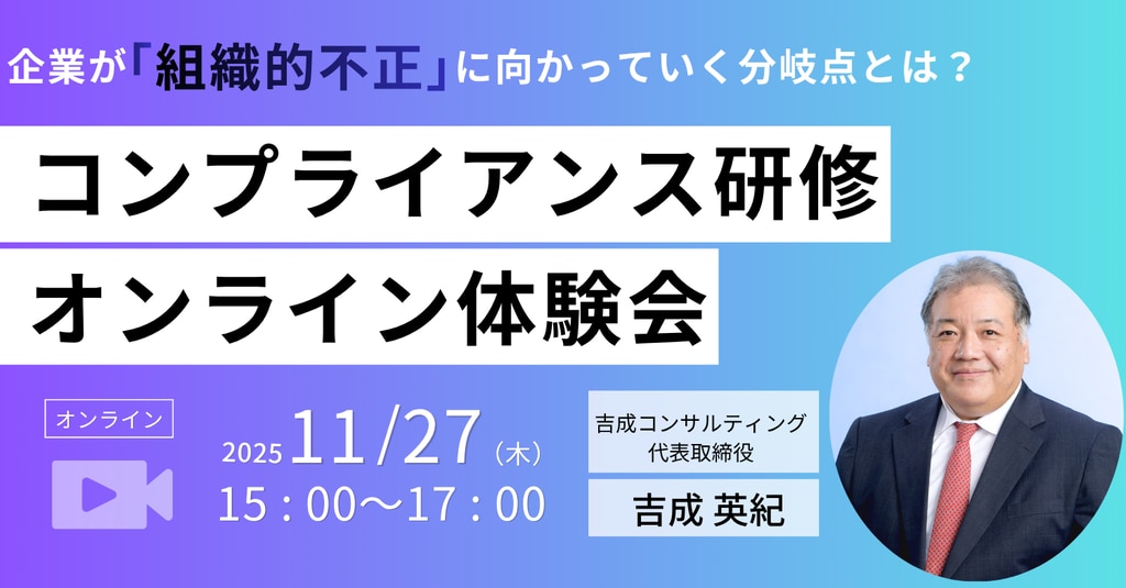 11/27 企業が組織的不正に向かっていく分岐点とは? コンプライアンス研修 オンライン体験会