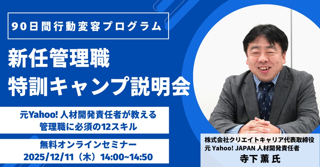 12/11 新任管理職 特訓キャンプ ~90日間行動変容プログラム ~ 説明会