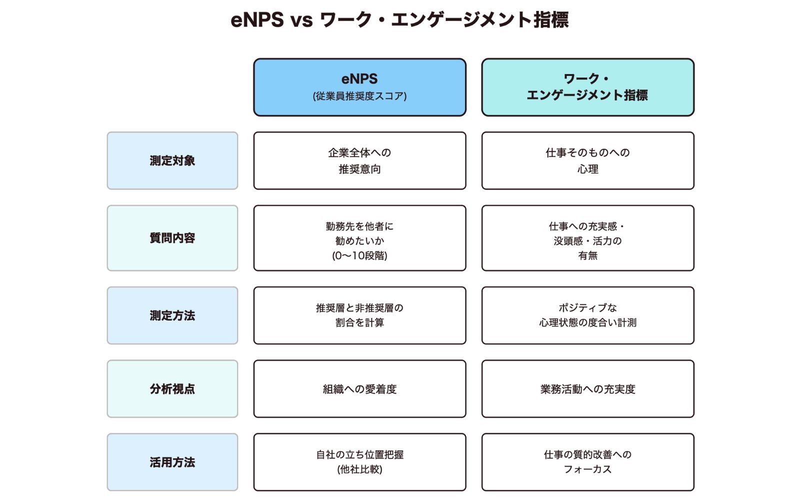 代表的な測定指標であるeNPSとワーク・エンゲージメント指標