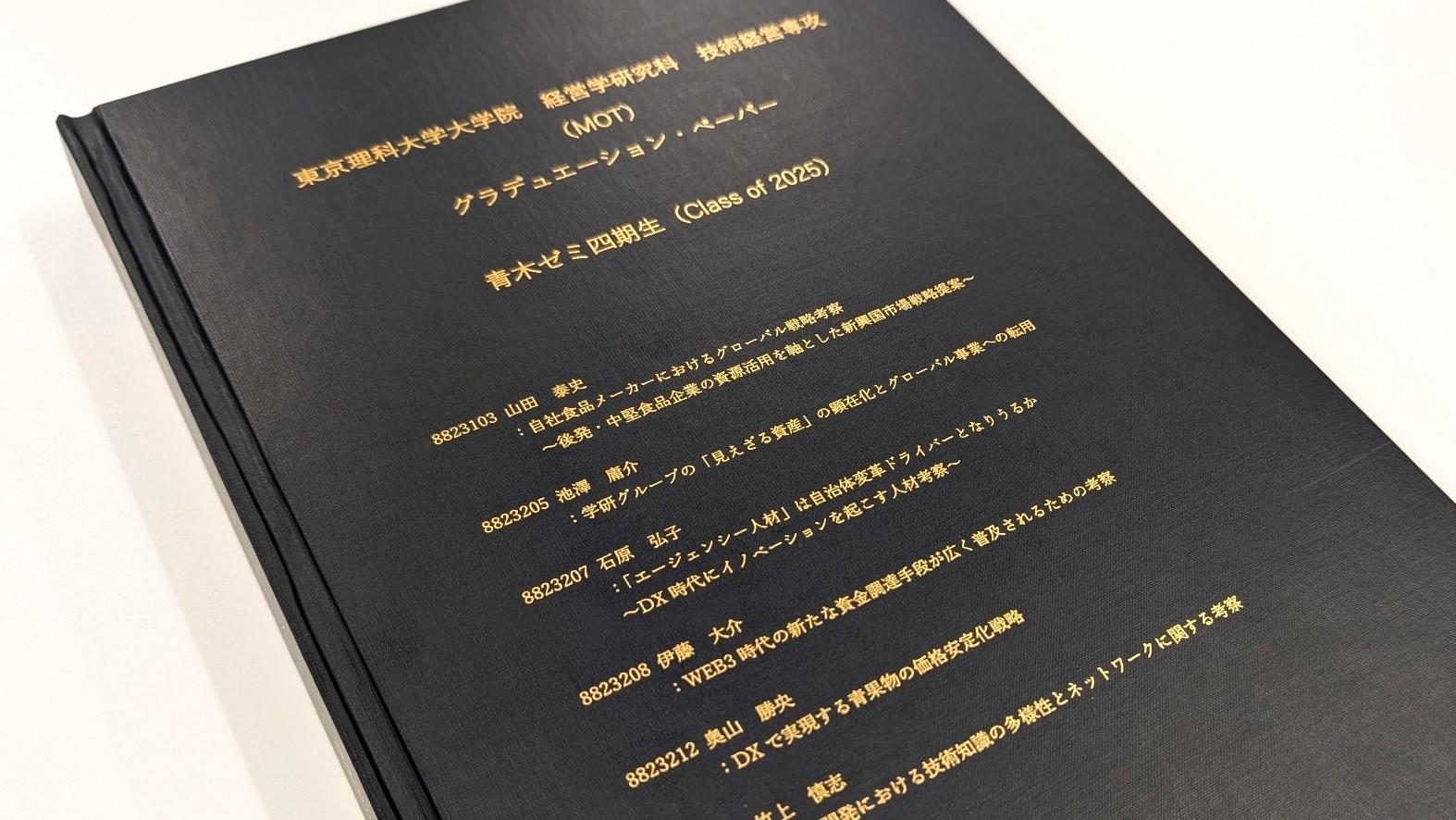 東京理科大MOTのグラデュエーションペーパーは、いわゆる学術論文ではなく、実務に関連する課題、所属する企業や業界、地域が抱える課題をテーマに設定し、その原因分析や解決策の提案を試みます。