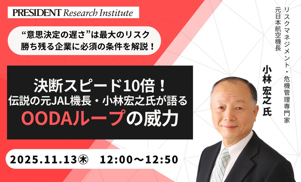 本ウェビナーでは、42年間無事故・無遅延を貫いた伝説の元JAL機長・小林宏之氏を迎え、極限の現場で培った“決断力の極意”を公開。