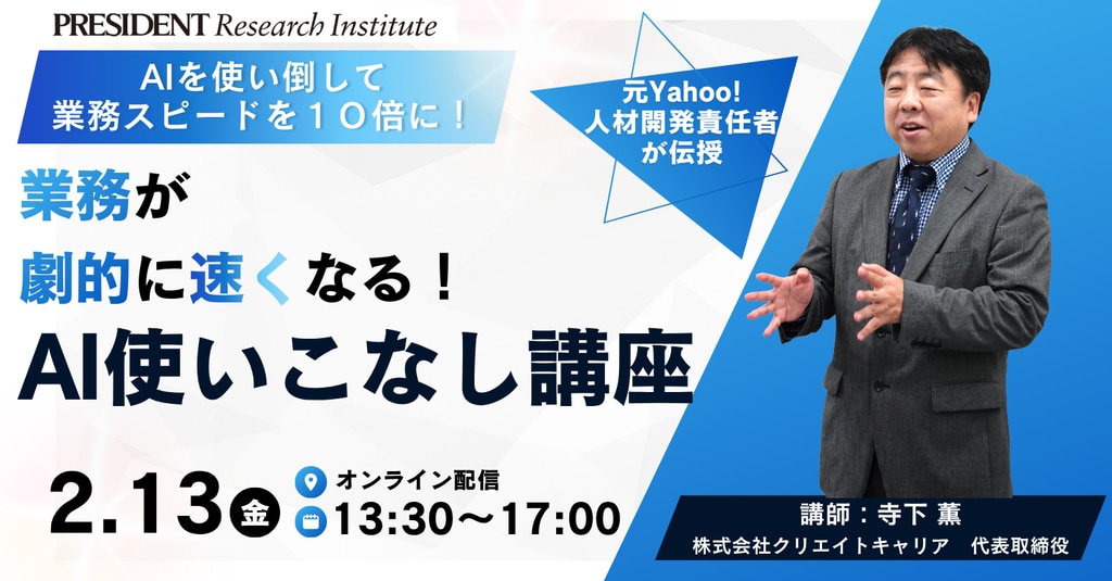 近年は企業のAI活用支援に注力し、特に「業務スピードを上げるためのChatGPT活用」に定評がある。