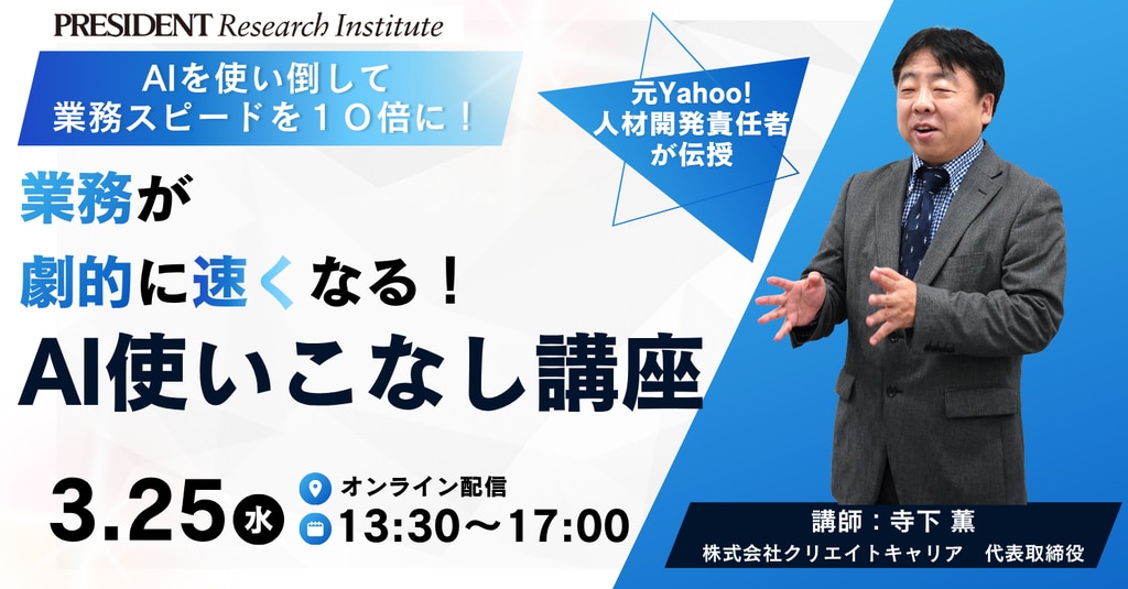 近年は企業のAI活用支援に注力し、特に「業務スピードを上げるためのChatGPT活用」に定評がある。