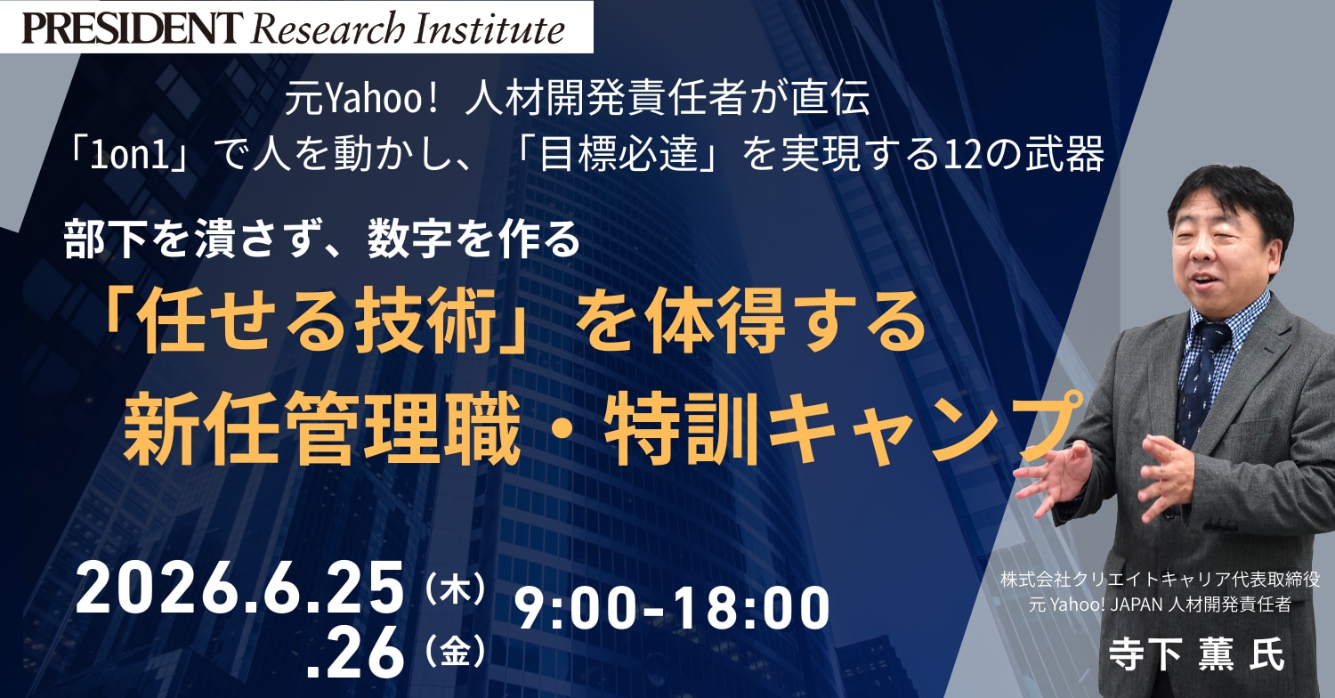 ①圧倒的な実績:講師は元Yahoo! JAPANで1,500名の管理職を育成し、現在は「2年先まで予約が取れない」人気講師・寺下薫氏。現場の修羅場を知り尽くした講師だからこそ語れる、キレイ事抜きの実践指導です。